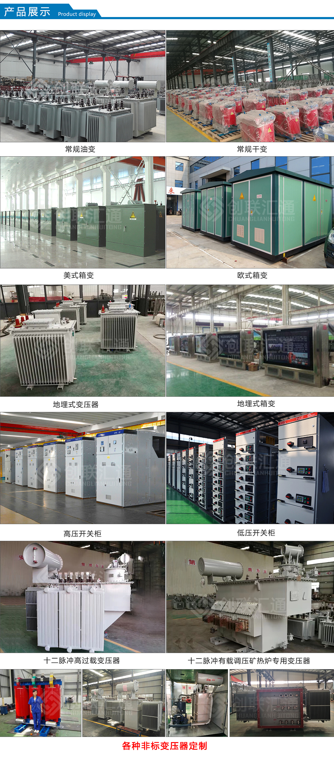 6.干式變壓器可配備完善的溫度檢測和保護系統(tǒng)。采用智能信號溫控系統(tǒng),可自動檢測和巡回顯示三相繞組各自的工作溫度,可自動啟動、停止風(fēng)機,并有報警、跳閘等功能設(shè)置;