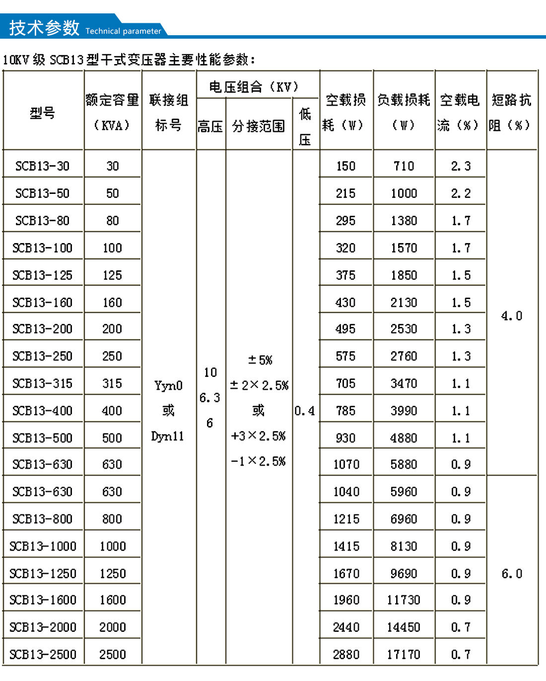 【額定容量】:30-2500kva 【額定電壓】:10kv 【聯結組別編號】:Dyn11,Yyno
