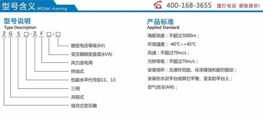 GS11-Z.F系列風力發電用組合式變壓器適用于35k V終端供電系統,作為變電、配電、計量、控制和保護裝 置。