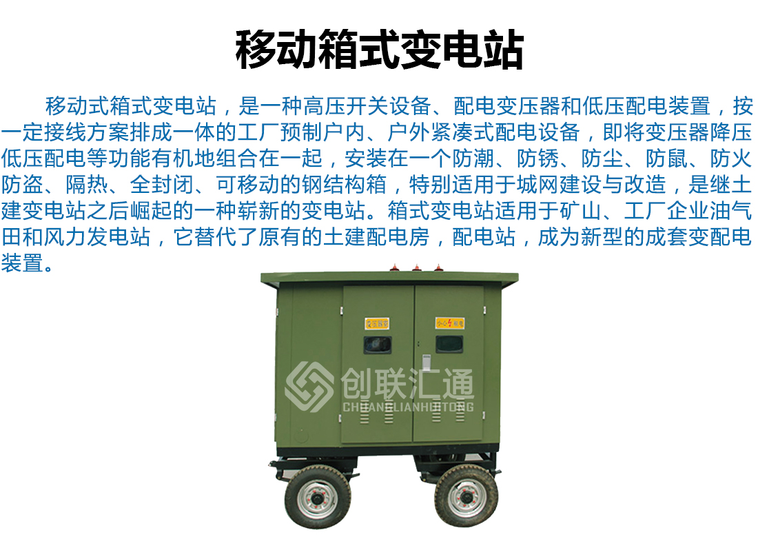 移動(dòng)式箱式變電站適用于住宅小區(qū)、城市公用變、繁華鬧市、施工電源等,用戶(hù)可根據(jù)不同的使用條件、負(fù)荷等級(jí)選擇箱式變。