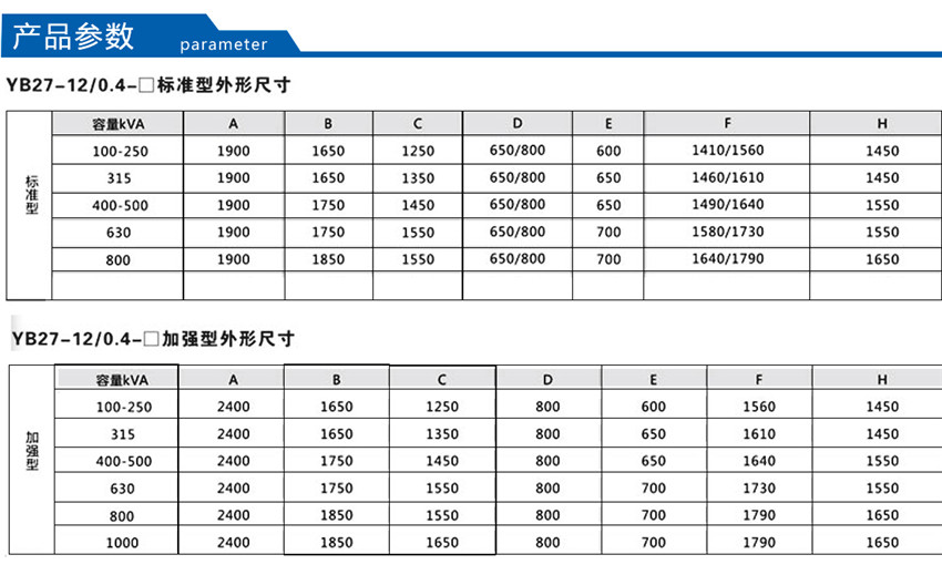 該產品將高壓負荷開關、高壓熔斷器置于變壓器油中,具有與變壓器器身共箱或分箱兩種結構形式。油箱采用全密封結構,配有油溫表、油位表、壓力表、壓力釋放閥、放油閥等元件以監測變壓器運行狀況。該產品分為環網型、終端型及電源型供電方式。為了使此種產品更適合于我電網的實際要求,公司又推了插拔型干式熔斷器,熔絲的熔斷不影響變壓器油的性能。根據低壓饋出要求的復雜程度,YBM-12/0.4型產品分為標準型、加強型和綜合型三種外殼形式,使用戶和設計單位在選型時,做到更靈活、更經濟。