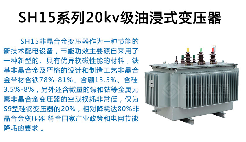 SH15非晶合金變壓器作為一種新一代節(jié)能產(chǎn)品,可以普遍適用于住宅小區(qū)、學(xué)校、工礦企事業(yè)單位以及社會(huì)公共設(shè)施。可在戶內(nèi)(外)使用,容量在315kVA 及以下時(shí)可安裝在桿上,海拔高度不超過1000m。